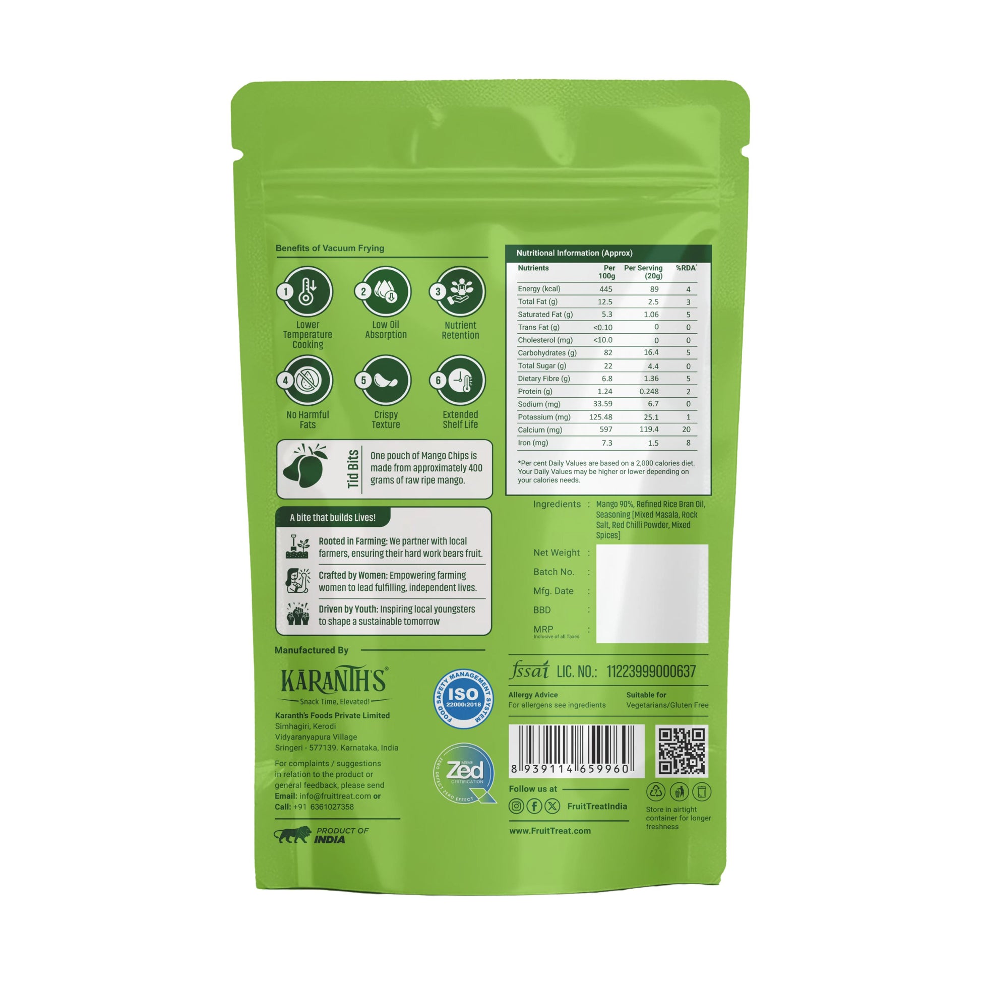 100% Healthy Snack: Made from semi ripe mangoes, vacuum fried for a light and crispy snack.